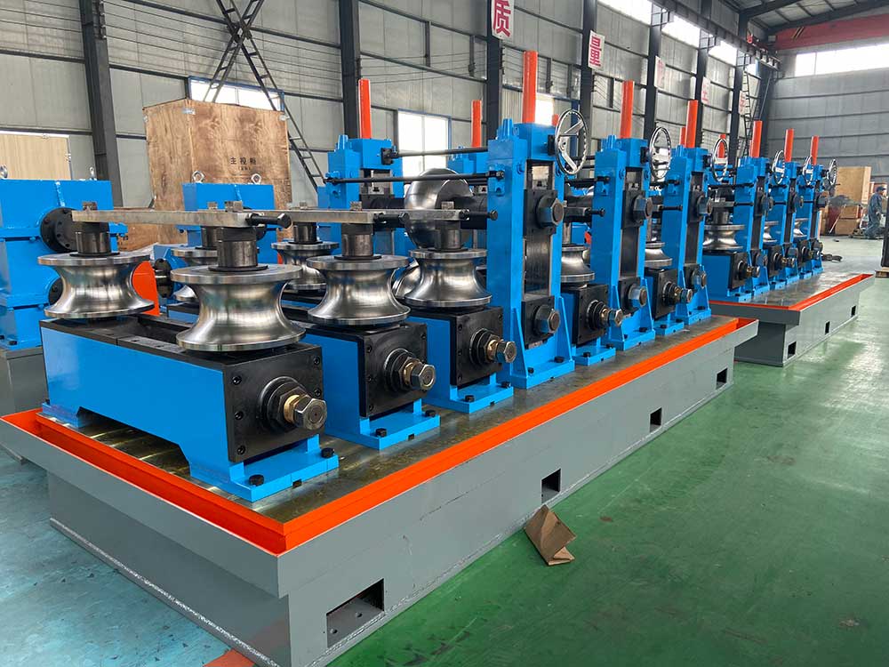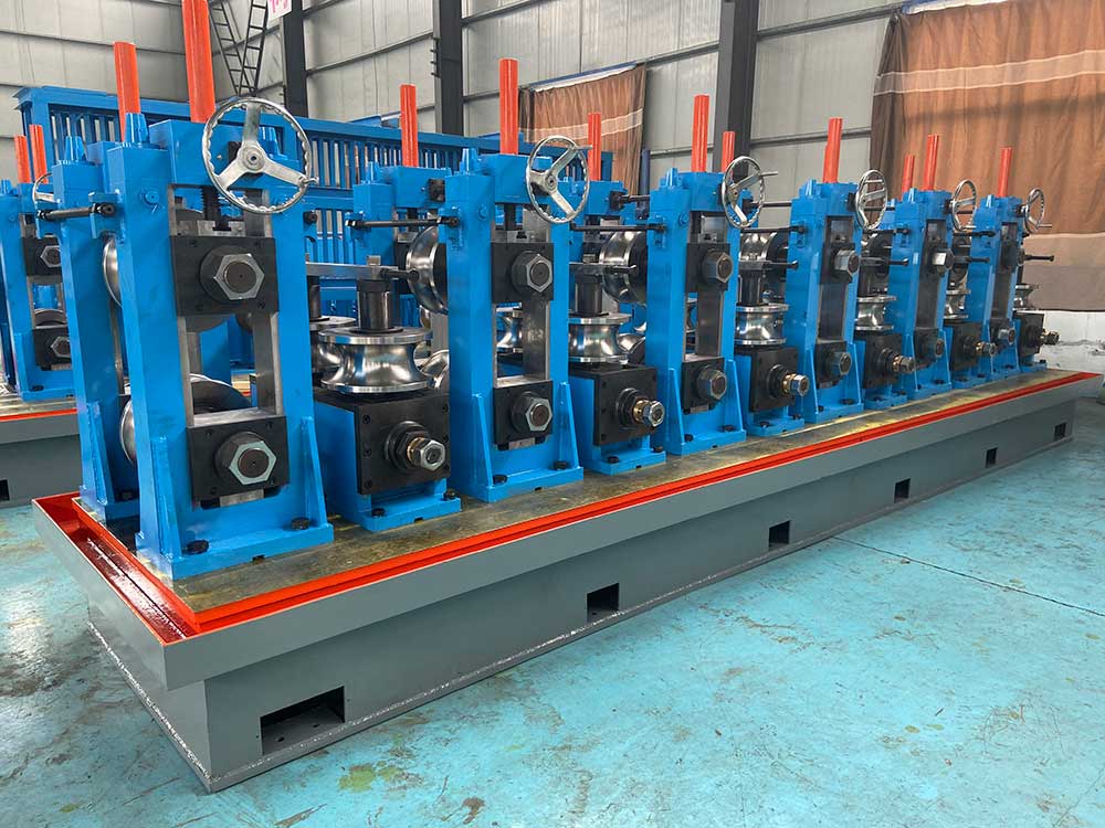 The mill is intended for manufacturing of round pipe of Φ89mm-Φ219mm with thickness of 3.0mm–8.0mm from cold-rolled and hot-rolled coil strip by means of unclosed tubular blank with its subsequent welding into tube, edge heating by means of solid state high-frequency welder, longitudinal seam welding in rolls of tube welding machine, cooling, further sizing or shaping and on-stream cutting of endless tube in measured lengths.